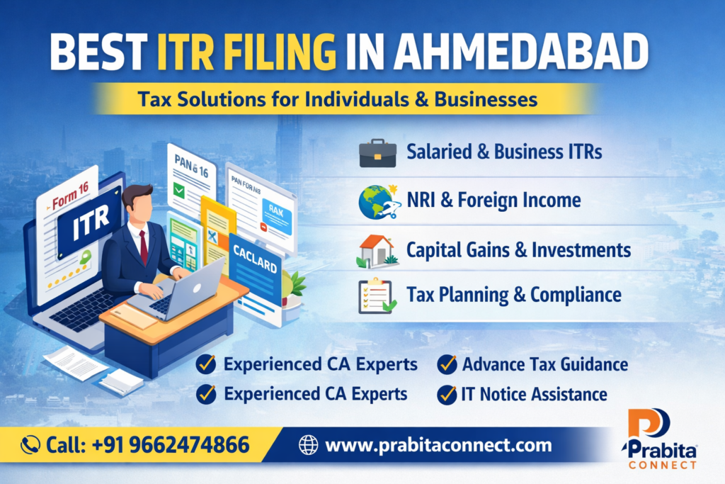 When it comes to reliable and accurate Income Tax Return (ITR) filing in Ahmedabad, Prabita Connect stands as a trusted tax consultancy firm offering complete income tax solutions for individuals, businesses, and corporates.